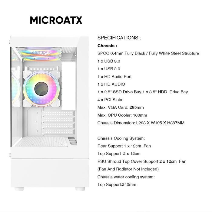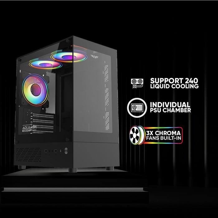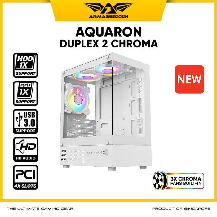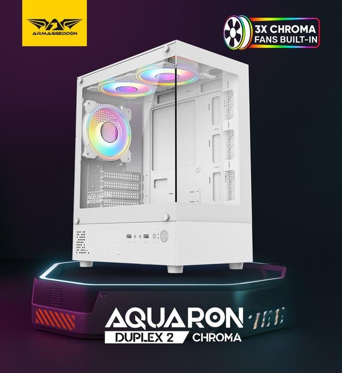 Casing PC Gaming Armaggeddon Aquaron Duplex 2 Chroma M-ATX with 3x RGB Fan Built In