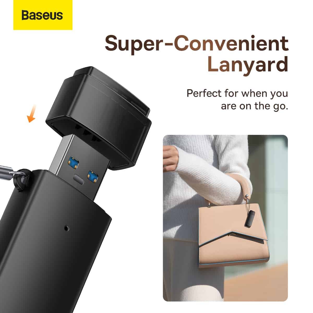 A universal memory card reader from the renowned Baseus brand is an accessory that you should have at your disposal. This versatile device has slots for SD and TF card formats.