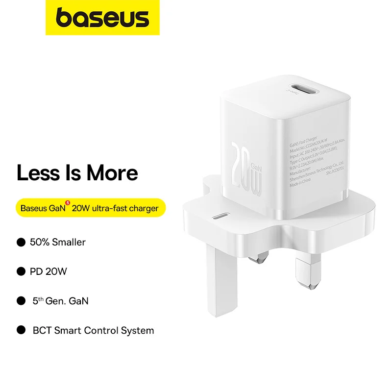 Baseus 20W GaN5 Mini Fast Charger Type-C UK Pin – Moon White – P10110907213-00 – 1 Year Warranty