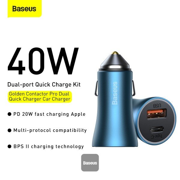 Name: Baseus Golden Contactor Pro Dual Quick Charger Car Charger U+C 40W