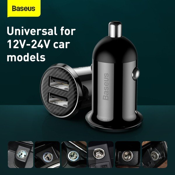 Baseus Grain Pro Car Charger (Dual USB 4.8A ) Black -(6MW)