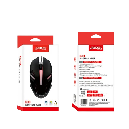 JEDEL M-66 USB optical mouse with plug-and-play setup.
