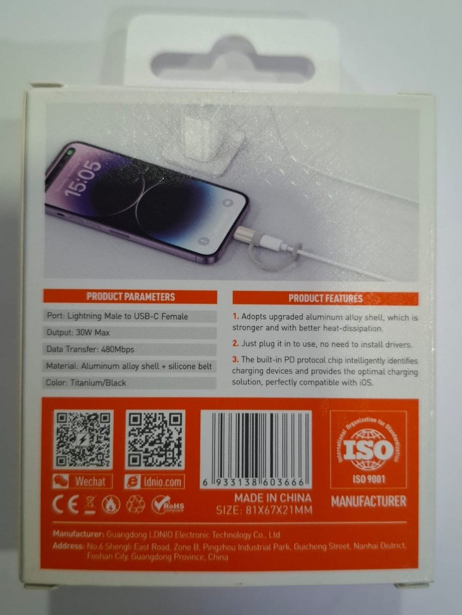 The LDNIO LC270 Lightning-to-USB-C Converter is a compact and convenient adapter that lets you connect USB-C devices (such as cables, chargers, or accessories) to Apple devices with a Lightning port. With support for up to 30W power delivery, this converter enables efficient charging and accessory compatibility in a small, portable form—perfect for travel, office, or everyday use.