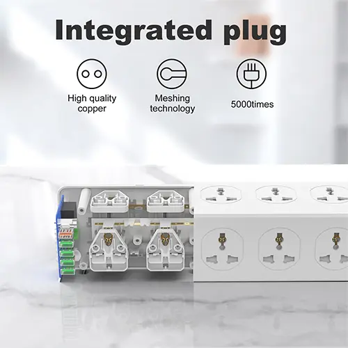 The 6 USB ports deliver an output of 3.4 Amp. This strategic design of this power strip also aids in ensuring perfect functionality for lasting protection. The fire retardant body of the strip ensures safe use. In addition, the heavy-duty 2500W cable provides optimal power flow to connected devices.
