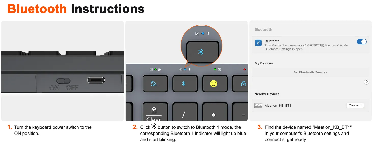MEETION BTK2000 2.4GHz + BLUETOOTH Dual-Mode WIRELESS RECHARGEABLE KEYBOARD (1YW)