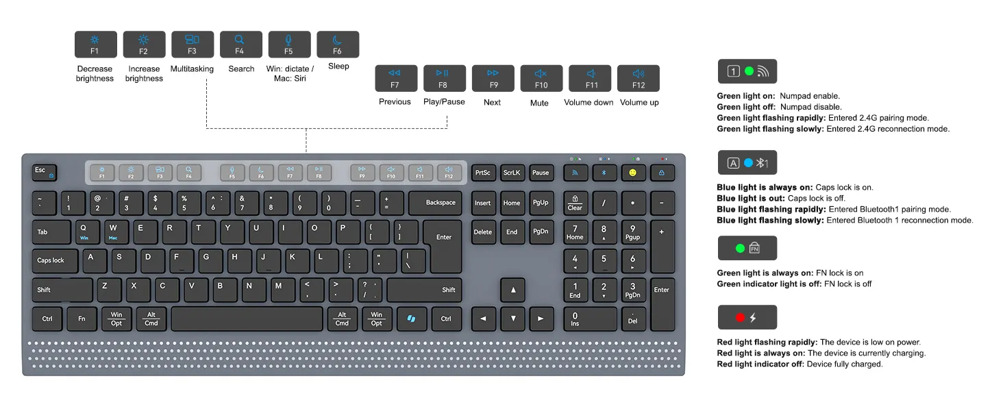 | Connection method: | 2.4G + Bluetooth | Multimedia Keys: | Yes |