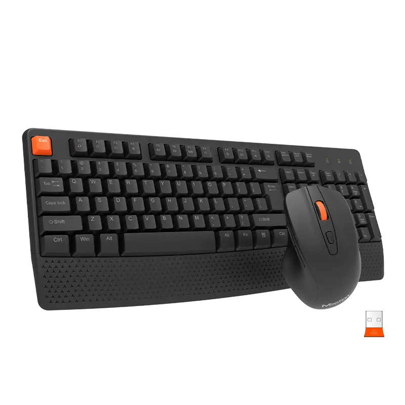 Elevate your workspace with the C4130 combo: ergonomic in design, whisper-quiet in action, and wireless without compromise. Thanks to reliable 2.4 GHz connectivity with up to 10 m range, you get freedom and stability. Adjust the mouse’s DPI across three levels for work or play. The keyboard features radium-carved characters that resist wear, and both keyboard and mouse operate with a silent touch. Compact yet thoughtful, it’s built for professionals who demand efficiency and comfort.