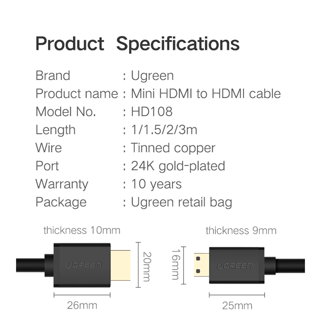UGREEN HD108 – Reliable Mini HDMI to HDMI cable for crisp 4K video and high-quality audio.