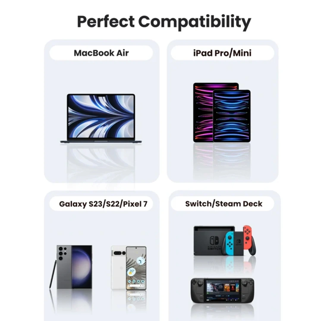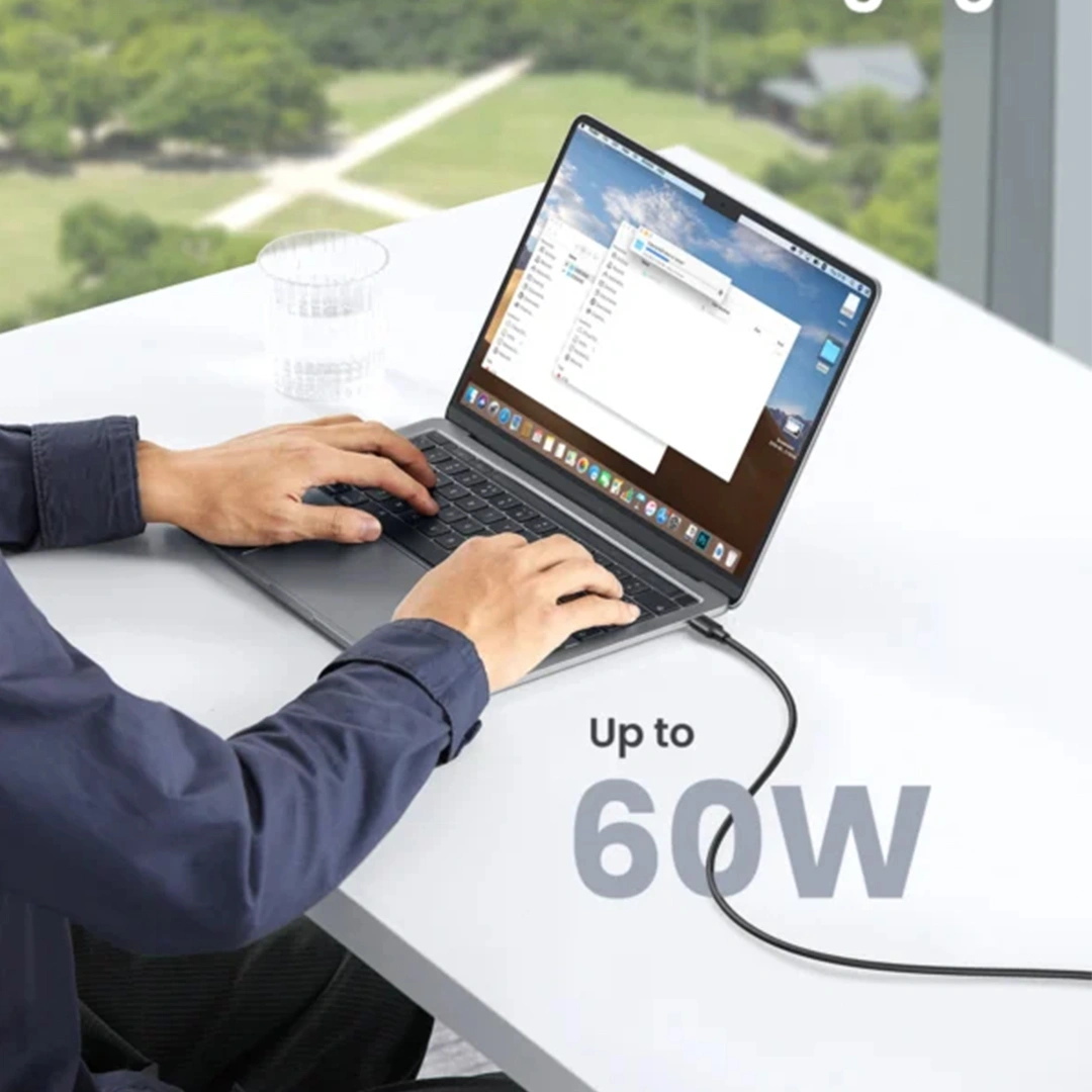 60W Fast Charging – Supports up to 20V/3A Power Delivery (PD) for rapid charging of smartphones, tablets, and laptops.