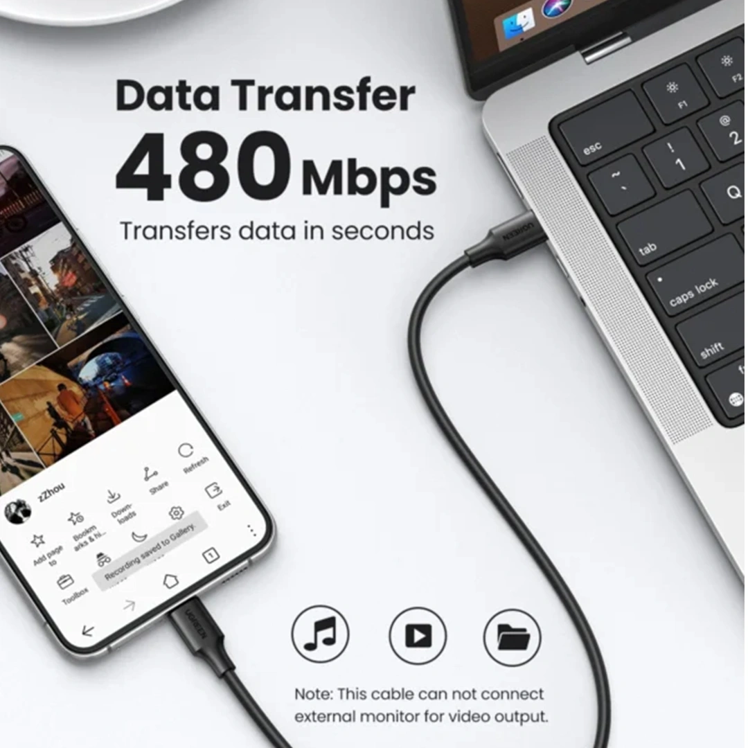 UGREEN 0.5m Type-C to Type-C 60W Cable — Fast, reliable, and durable charging for all your USB-C devices.