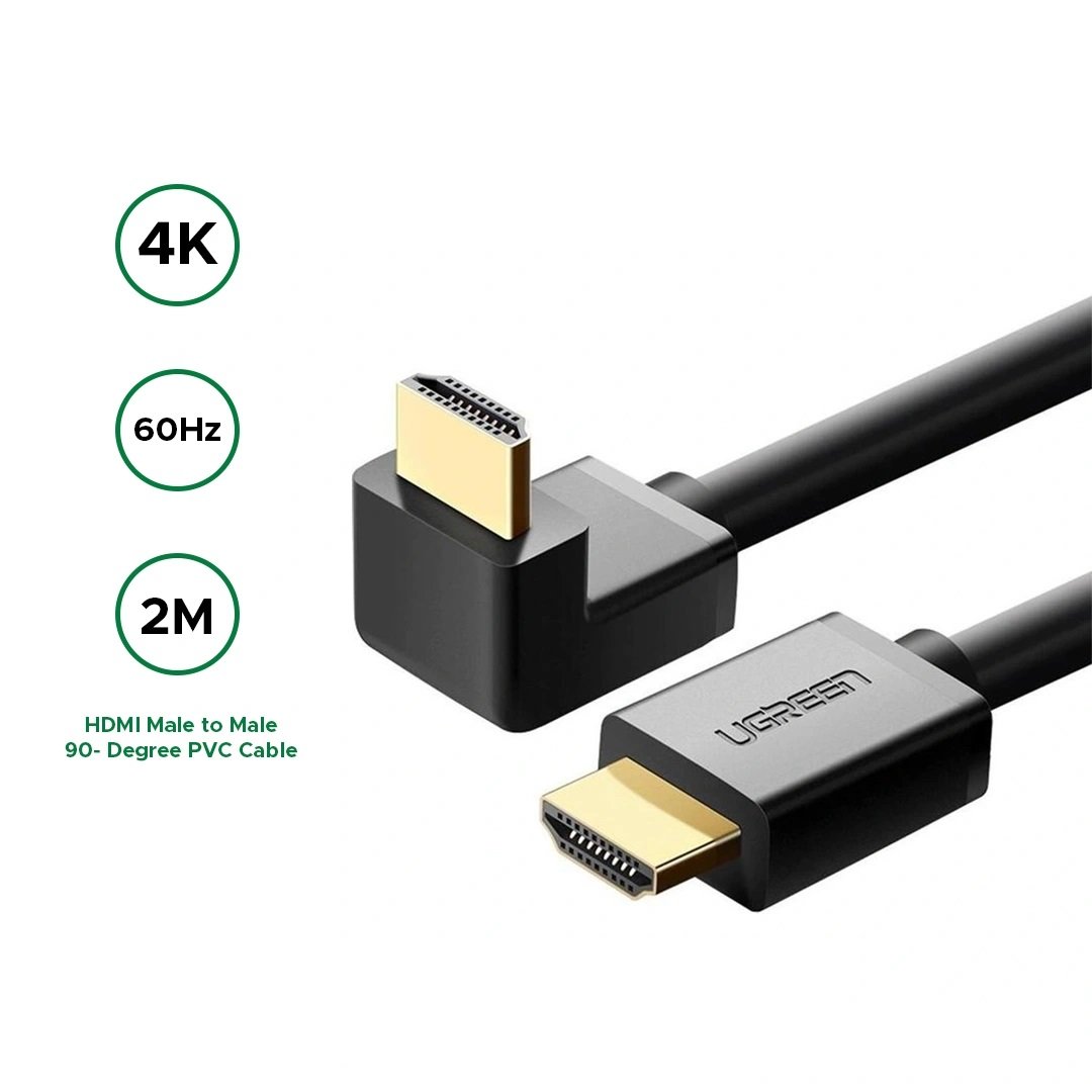 UGREEN 2 Meter 4K@60Hz HDMI Male to Male 90 Degree Black Cable – HD103 – 10173 – 1 Year Warranty