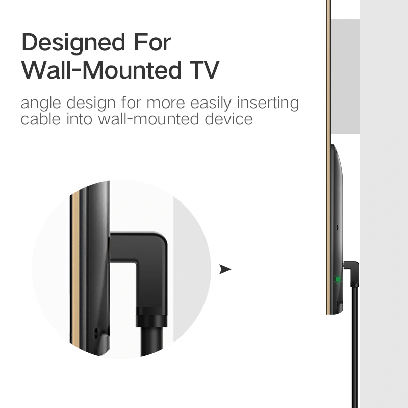 - Ideal for wall-mounted TVs and monitors, preventing cable bending and damage.