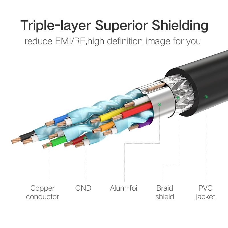- Triple-layer shielding (ground wire + aluminum foil + braided shield) blocks interference and ensures stable signal transmission.