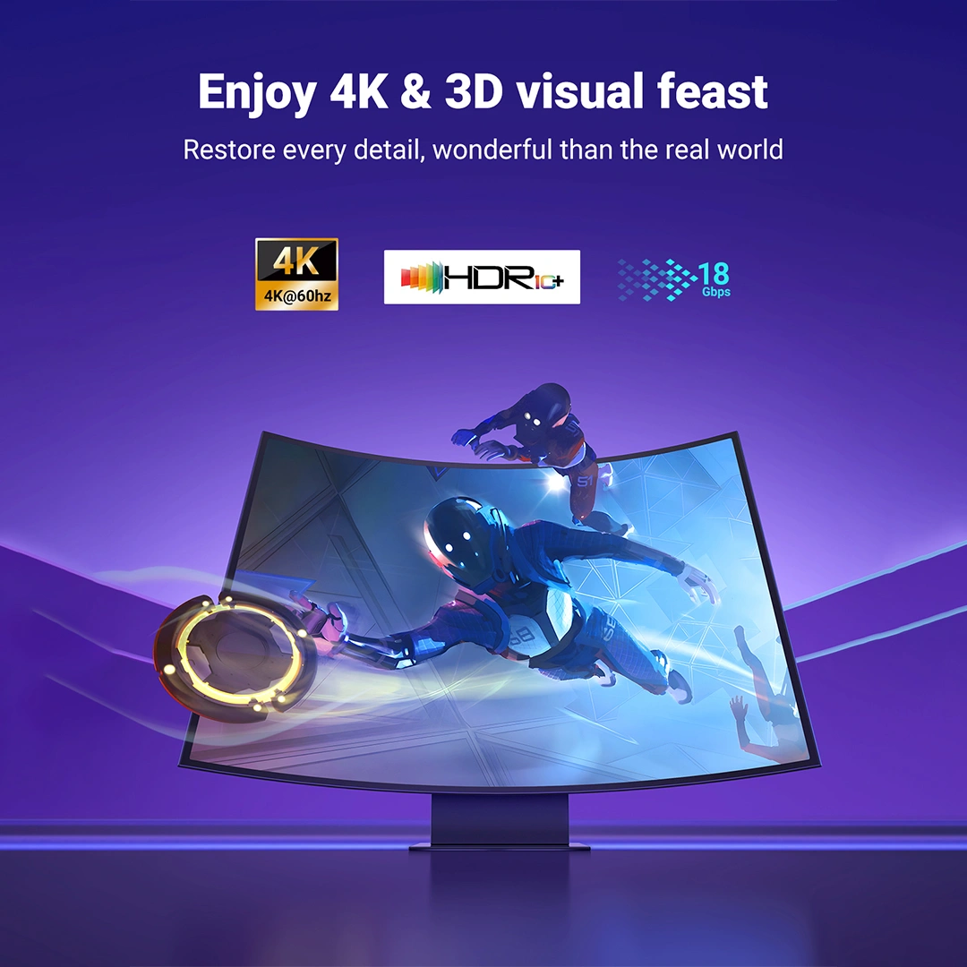 • 📺 4K UHD Resolution – Supports resolutions up to 4K@60Hz, delivering sharp, vibrant visuals.