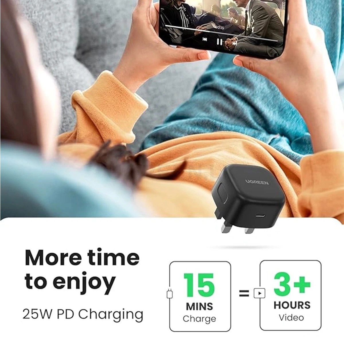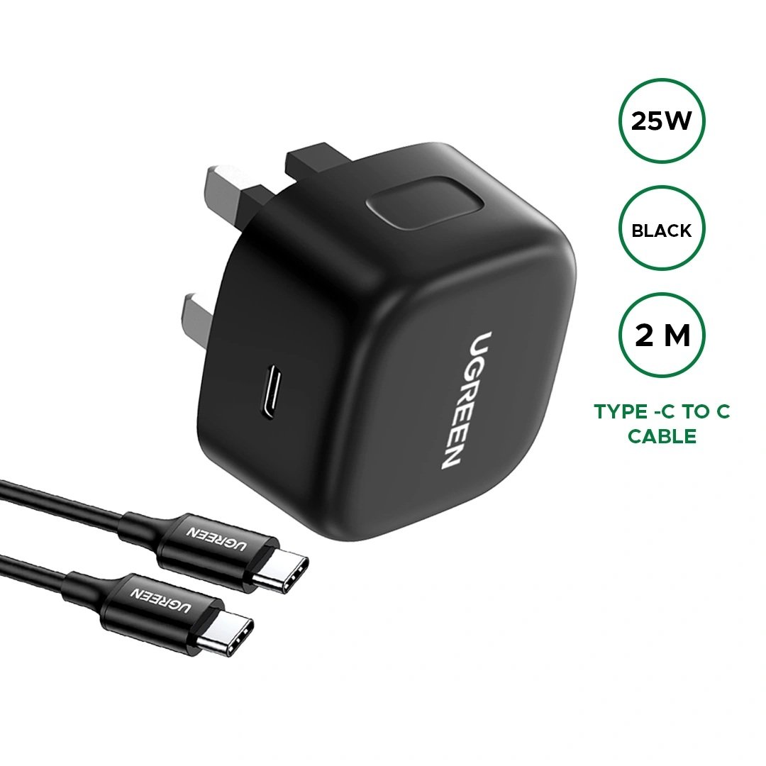 UGREEN 25W Type-C PD UK Pin Fast Charger With Type-C to Type-C 2 Meter Cable – CD250 – 50577