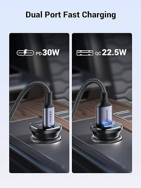 • Dual-Port Charging: Equipped with a USB-C port (PD 30W max) and a USB-A port (QC 22.5W max), allowing simultaneous charging of two devices without compromising speed.
