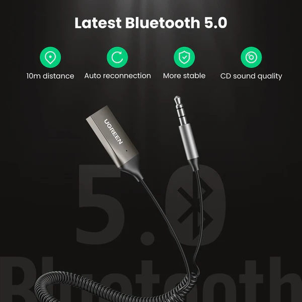 UGREEN 5.0 Bluetooth 3.5mm AuxCar Receiver with Mic – CM309 – 70601 – 1 Year Warranty