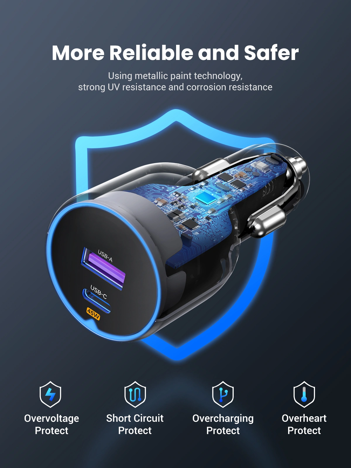 UGREEN 63W Type-C + USB Fast Car Charger – EC701