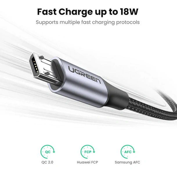 The UGREEN USB to Micro USB 2.0 Cable (US290) combines efficient chargingfast data transfer, and premium durability in a sleek metallic design. With support for 18W fast charging and 480Mbps transmission speed, it’s an excellent choice for smartphones, tablets, power banks, and other Micro-USB devices.