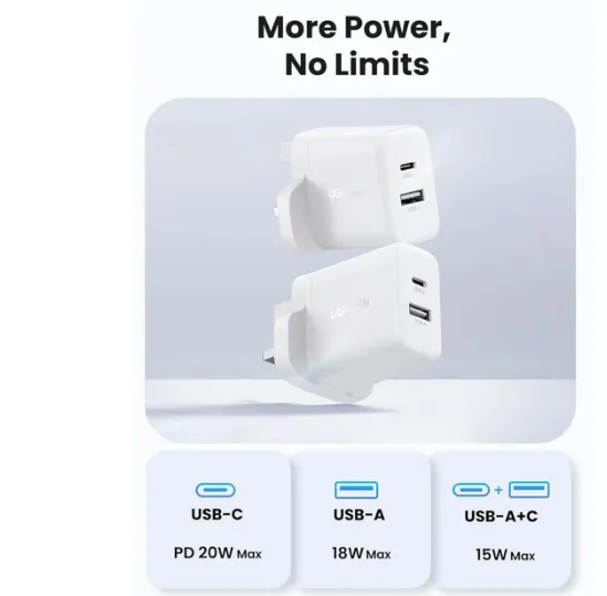 The UGREEN X227 20W Dual-Port Fast Charger combines USB-C Power Delivery and USB-A fast charging in a compact UK-pin design. With intelligent power distribution and thermal guard protection, it offers fast, safe, and versatile charging for phones, tablets, and everyday devices.